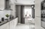 Köket är stort med både över-och underskåp samt plats för ett köksbord. Golvet är ljust och härligt och matchar köksluckorna snyggt i vitt. Väggarna är målade i en mörkare grå ton som snyggt fångas upp av golvet. Köket är modernt med slät luckor i vitt. Här finns kombinerad integrerad kyl och frys samt diskmaskin, häll, fläkt och inbyggd ugn samt micro i tacksam arbetshöjd. Det är ett stilsäkert kök med detaljer som gör det där lilla extra. Kakel enda upp till taket, gott om ljusinsläpp och integrerade samt inbyggda vitvaror.