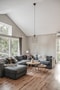 Vardagsrum med en härlig rymd tack vare taket som följer upp till nock där gott om plats finns för större soffgrupp och övrigt möblemang om så önskas. Trevligt med braskamin som värmer gott kalla dagar och skapar mysfaktor. Här ges ett slående ljusinsläpp från stort fönsterparti mot baksidan och skogen. Även från vardagsrummet finns en utgång till baksidan och naturen. I anslutning till kök och vardagsrum finns även en rymlig klädkammare för ytterligare förvaringsmöjligheter.