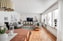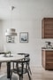 Sedan öppnar köket upp sig. Där en vägg har tagits ner för att få en öppen och social känsla i hela entréplanet. Köket renoverades 2020, gott om skåp och arbetsytor, vitvaror bestående av två hela kylar (frys finns i nedre planet), spis och diskmaskin. Matplats vid fönstret.
