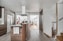 Kök- takhängd fläkt, vägg nertagen på köksö, aukustikpanel