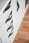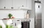 Stilrent kök med släta luckor och moderna handtag i läder. Luckorna är ljust gråa. Det finns gott om arbetsyta och förvaring i både under och överskåp. Köket erbjuder; ugn, häll, kombinerad kyl och frys och diskmaskin. Det finns plats för matsalsdel.