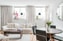 Härligt vardagsrum med öppen planlösning till köket. Målade väggar och gott om plats för soffgrupp.
