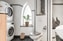 Helkaklat badrum i gråa, svarta och vita kulörer. Materialet leker stilfullt med varandra och flätas in till ett unikt badrum med eget duschhörna som liknar ett eget mini-rum. I övrigt erbjuder badrummet en tvättpelare med torktumlare och tvättmaskin, wc, kommod och golvvärme för komfort. Att kliva in i badrummet ger en känsla av att kliva in på ett spa. Det finns detaljer utöver det vanliga att upptäcka här.
