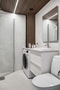 Duschrummet renoverats med microcement på vägg och golv. Smakfulla materialval och detaljer av wood-on-wall! Utrustat med dusch, wc, kommod och handdukstork samt tvättmaskin, praktiskt.