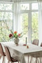 Vardagsrummet är rymligt och har en imponerande takhöjd. Längs med rummet löper ett läckert burspråk med fantastiska fönsterpartier ut mot den vackra allén längs med Västra Kanalgatan. Här inryms både större soffgrupp och matbord.