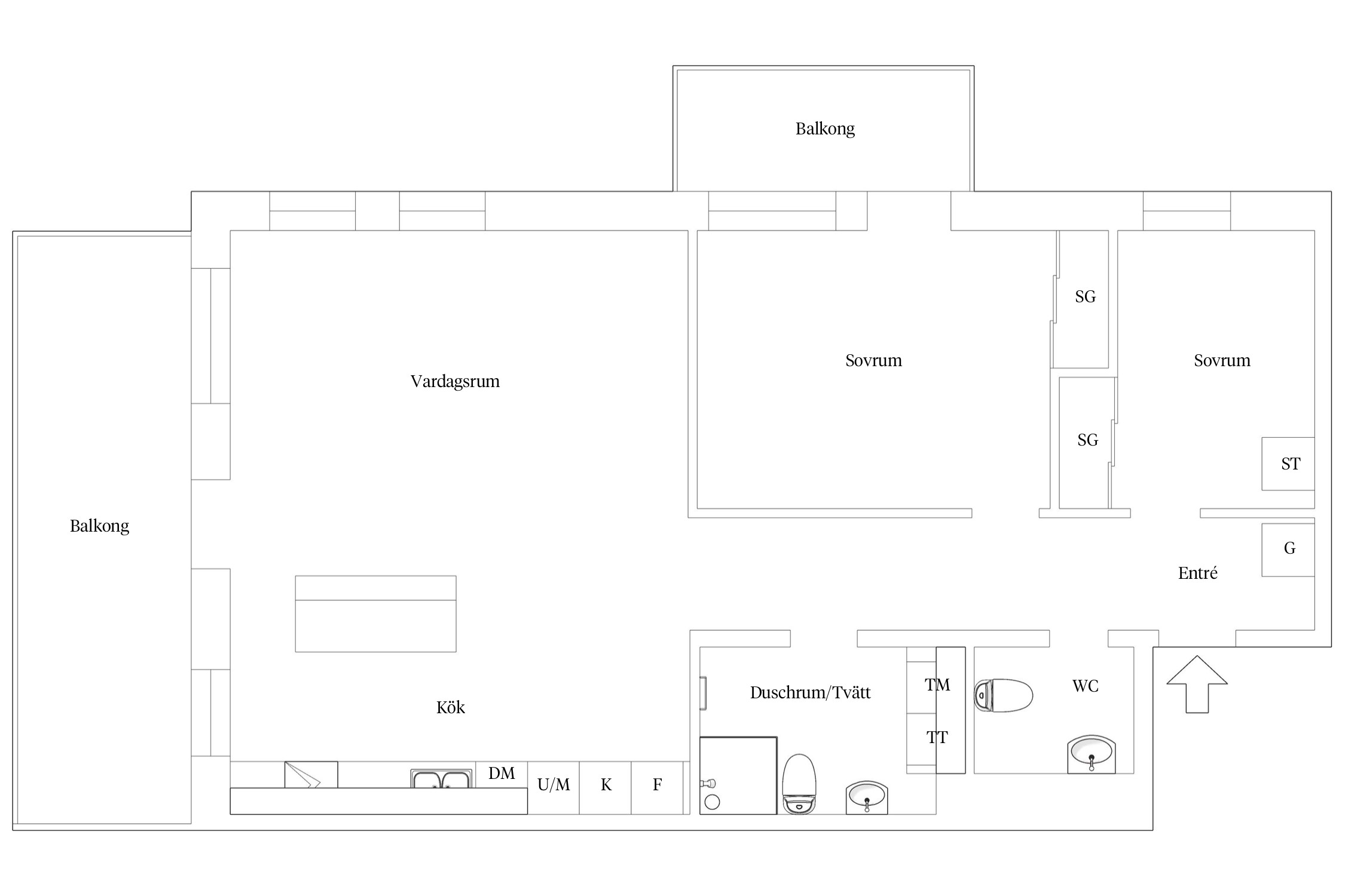 Du välkomnas av hall med klinkers på golv och garderob för förvaring. I direkt anslutning når du gäst-WC samt bostadens två sovrum. Det större sovrummet av de två har egen utgång till den mindre balkongen, vilket ger en privat oas med utsikt över vattnet. Förvaringsmöjligheterna är generösa med skjutdörrsgarderober i båda sovrummen. Duschrummet är helkaklat och praktiskt inrett med tvättdel. Från inre hall öppnar bostadens stora rum upp sig med ljusinsläpp från två väderstreck. Köket, med sin stilrena köksö, är integrerat med vardagsrummet i en öppen planlösning som skapar en perfekt plats för sociala tillställningar. Här finns gott om utrymme för både soff- och sittgrupp samt naturlig del för matgrupp i anslutning till köket. Med härliga fönsterpartier samt altandörr bjuder man in det yttre och den fantastiska utsikten från detta rum. Från vardagsrummet når du bostadens stora balkong om 14 kvm där både loungegrupp och matbord ryms, idealisk för både avkoppling och middagar utomhus.