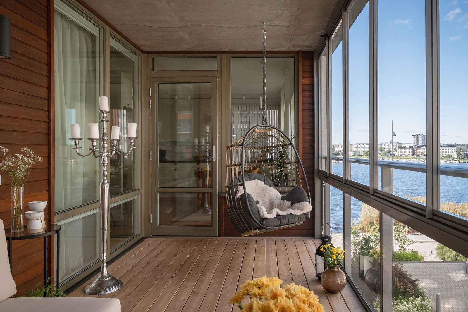 Hemtrevlig bostad med utsikt över området och det glimrande vattnet!