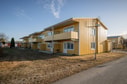 Vissa av lägenheterna har det tillhörande förrådet i förrådslängan bredvid garagen och vissa av lägenheterna har sitt förråd ute på framsidan av den egna bostaden.