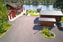 På den stora, grusade uppfarten finns ett dubbelgarage med betonggolv, elport och platsbyggd förvaring. Ytterligare förvaring finns i en mindre förrådsbyggnad bredvid garaget.