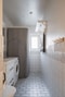 Golvet består av ett klinkergolv med golvvärme samt halvkaklade väggar med väv upp till. Här finns dusch, Wc, handfat samt en tvättmaskin.