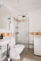 Bostaden är i mycket gott skick och här är det bara att flytta rakt in. Det moderna köket går i stilrena och tidlösa färgval med grå köksluckor, vitt kakel ovan arbetsbänken samt en praktisk arbetsbänk i laminat. Köket är fullt utrustat med inbyggd mikro och ugn, integrerad diskmaskin samt kyl och frys. Här finns gott om förvaring och plats för en matgrupp för 4–6 personer, perfekt för både vardag och sociala tillställningar.