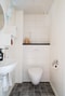 2022 - Renoverad WC nere, klinker, vattenburen golvvärme, vägghängd WC, svart granitskiva Norrsten