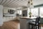 Välutrustat kök i lantlig stil med vita skåpluckor samt några med glas och spröjs. Ett flertal överskåp ovan den långa bänkskivan i laminat skapar gott om plats till förvaring och avlastningsytor. Vitt kakel ovan bänkskivan och ett flertal lådor och skåp nedtill. Köket som har en praktisk planlösning är öppet och ljust med plats för en matgrupp till ca 6 personer. Maskinparken består av inbyggnadsugn och Micro, spis, fläktkåpa i rostfritt stål, diskmaskin samt kyl och frys, dessa är fullstora och i rostfritt stål.
