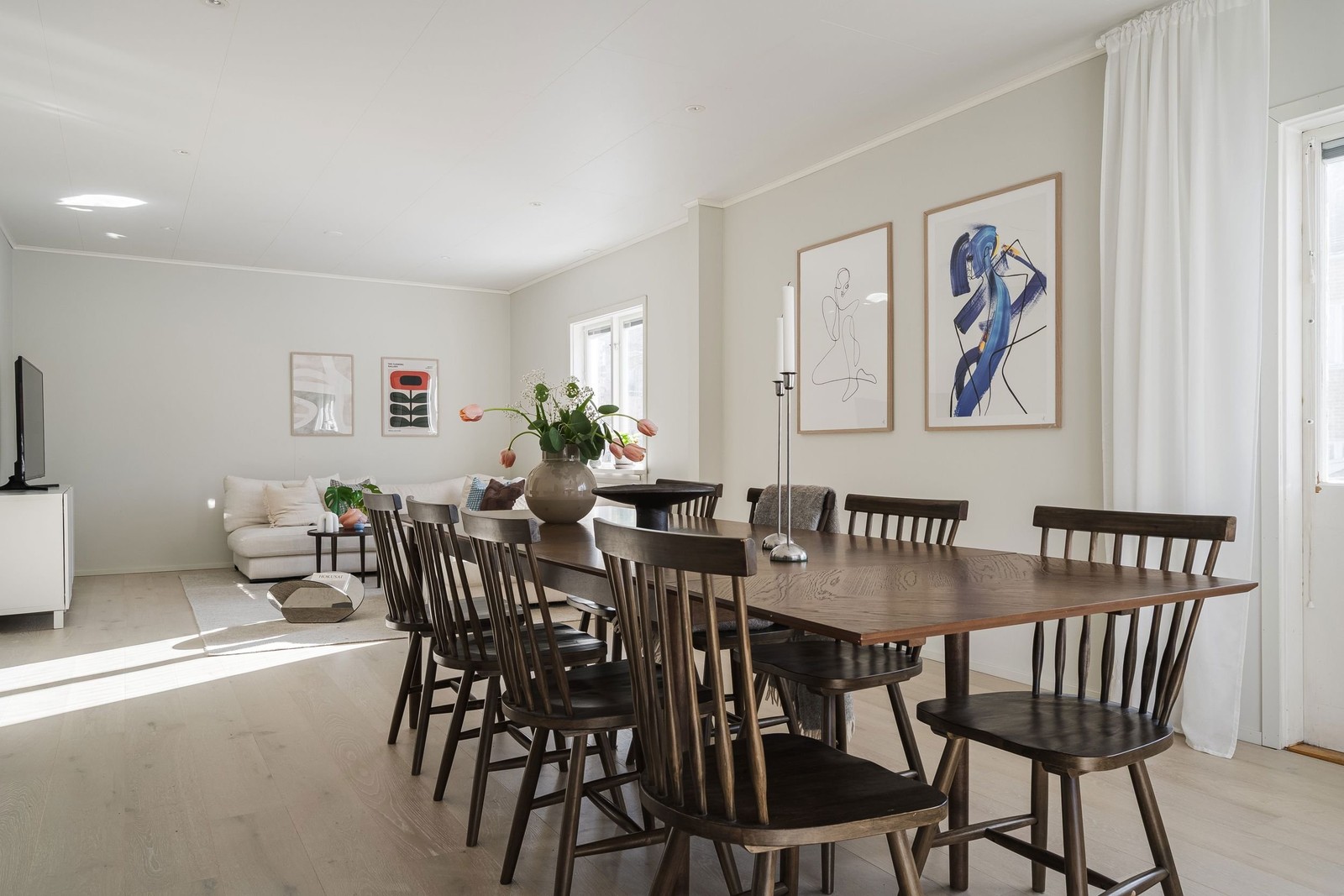 Huset är fördelat på tre plan och präglas av en ljus och luftig atmosfär med generösa ytor och fina materialval. Entréplanet har omvandlats till en modern och rymlig tvårummare med öppna sociala ytor, ett smakfullt renoverat kök, stort vardagsrum samt ett rofyllt sovrum. För den som behöver fler rum finns en perfekt lösning – direkt anslutning till källarplanets två inredda sovrum, idealiska för tonårsbarn, gäster eller hemmakontor.