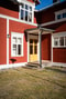Den röda huvudbyggnaden står med stolthet och klassisk skönhet, med ljusa knutar och tidstypiska detaljer. Innanför dörren möts man av en varm atmosfär där dåtid och nutid förenas med: