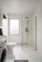 Sovrummet välkomnar dig in till en lugn oas med utrymme för en dubbelsäng och smarta förvarings lösningar. Här finner man lägenhetens andra balkong som inte är inglasad. Badrummet är lika lyxigt som praktiskt, med plastmatta på golv och väggar samt en egen tvättmaskin. Praktisk dusch hörna och den stilrena kommoden höjer helhetsintrycket ytterligare.