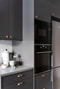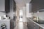Det moderna köket imponerar med mörka, moderna, släta luckor, generösa arbetsytor och full maskinpark, inklusive diskmaskin, spishäll, inbyggd ugn och mikro samt en kombinerad kyl/frys. Här finns gott om plats för en stor matgrupp som gör matlagning och umgänge till ett nöje. Vardagsrummet bjuder in till mysiga kvällar med plats för en soffgrupp, och från vardagsrummet når du en fransk balkong.