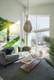 Redan vid entrén möts du av ett generöst ljusinsläpp. De stora fönsterpartierna låter dagsljuset röra sig genom bostaden och förstärker känslan av rymd.