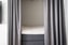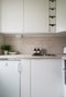 Kokvrån, som renoverades 2021, är utrustad med moderna bekvämligheter inklusive en mindre induktionshäll, kombinerad ugn och mikro, samt en kyl med frysfack. De vita köksluckorna och laminatbänkskivan kompletteras av en rostfri diskho och blandare, vilket ger ett stilrent och funktionellt kök.