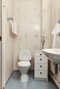 Utrustning: Badkar, wc, handfat, uttag till bidé.