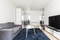Lägenheten kännetecknas av en öppen planlösning och moderna färger i form av svart och vitt.
