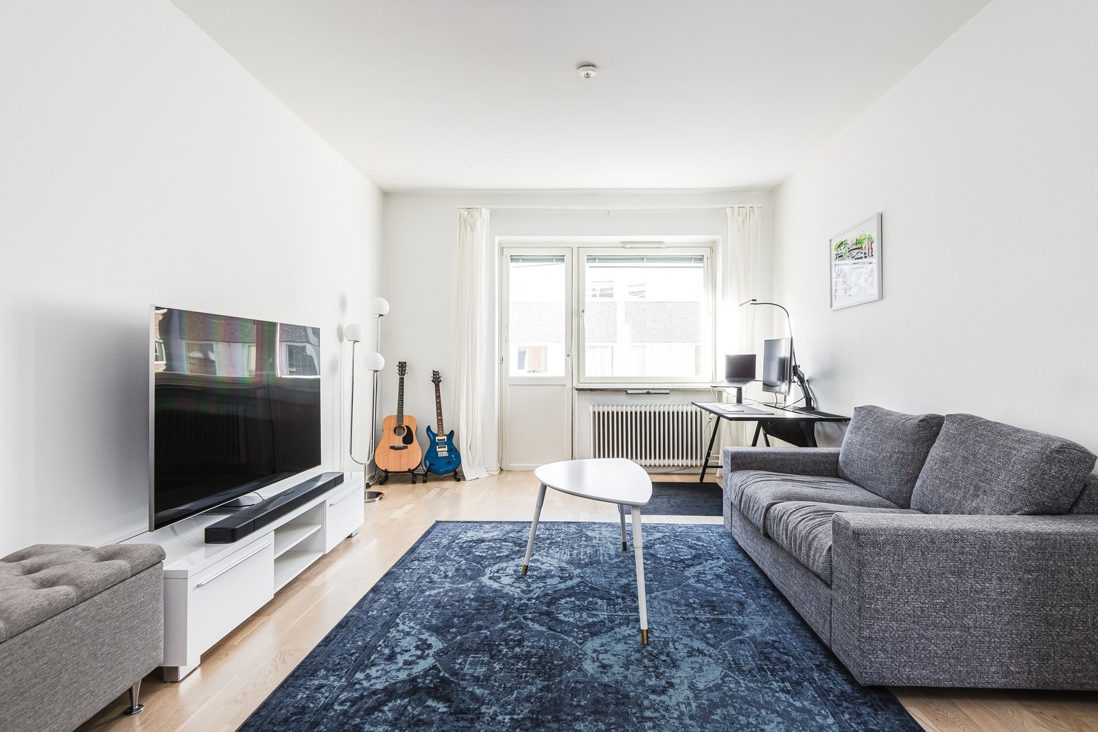 Vardagsrummet har öppen planlösning med köket och hallen. Från vardagsrummet når man även balkongen som ligger i söderläge.