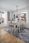 Lägenheten erbjuder ett generöst ljusflöde tack vare fönster i tre väderstreck. Vardagsrummet har både fransk balkong och en stor balkong med dubbeldörrar – perfekta platser för att njuta av morgonkaffet eller sommarkvällen.
