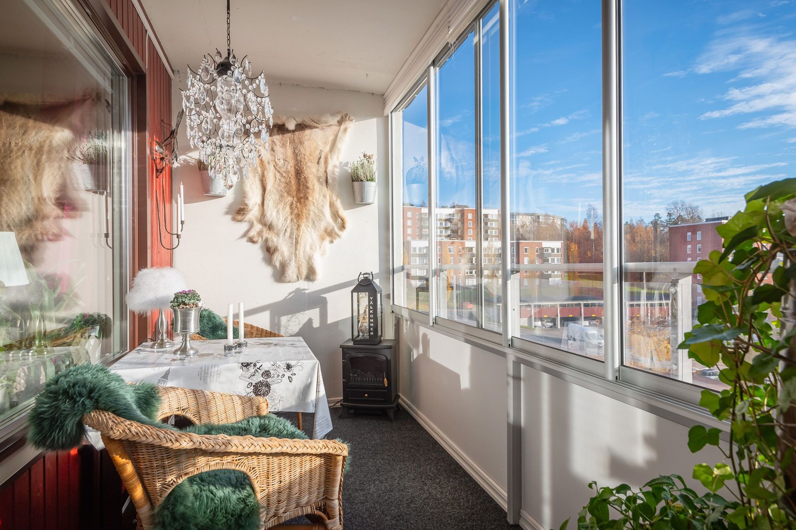 Inglasad balkong i fint solläge.