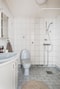 Källarvåning med klinkergolv. Rymmer gemensam tvättstuga och förråd.