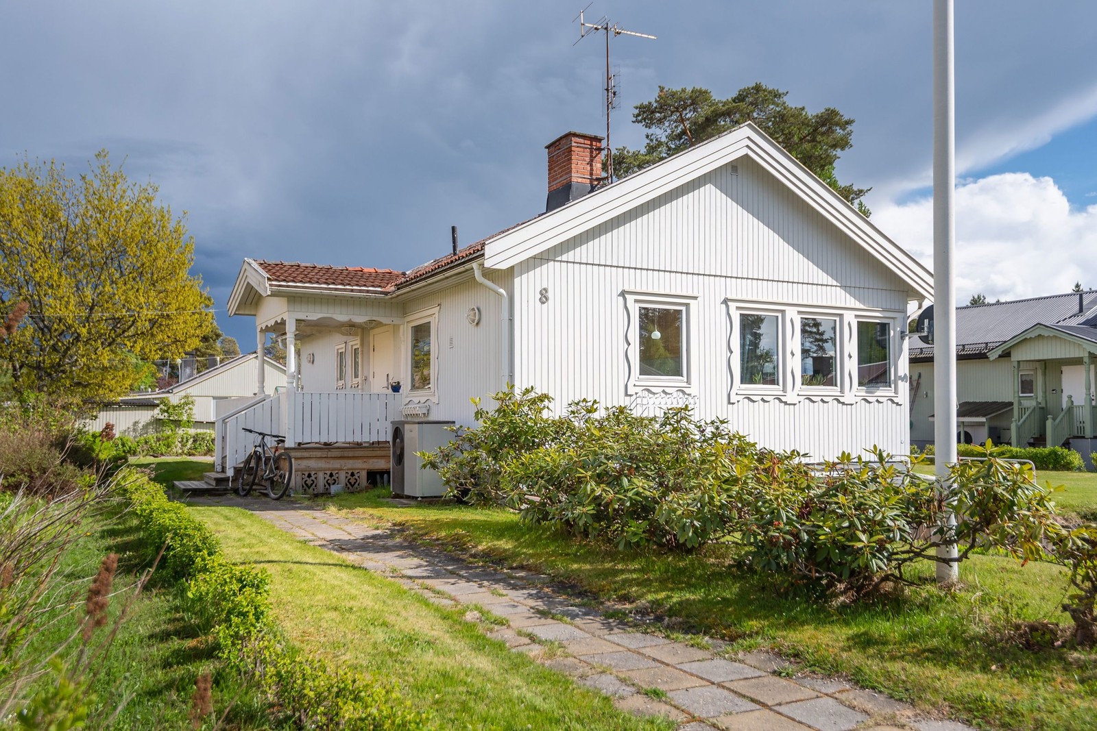 Charmig villa med renoverat badrum, gäststuga, växthus och garage. Barnvänligt och nära fiskevatten.