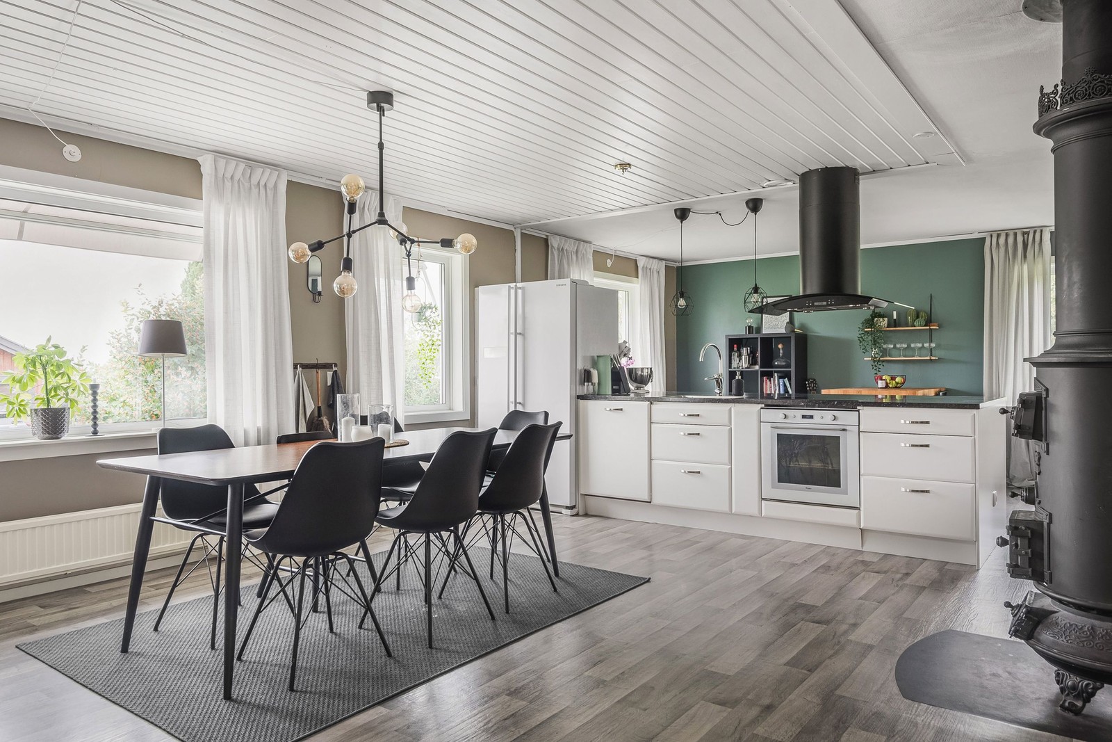 Denna charmiga 1-plansvilla har genomgått en smakfull renovering som verkligen gör den till ett hem att trivas i. Här möts du av ett modernt kök som harmoniskt flätas samman med vardagsrummet i en öppen planlösning – perfekt för både familjemiddagar och socialt umgänge.