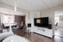 Trevligt vardagsrum med värmande kamin. Socialt öppen planlösning.