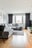 Trivsamt vardagsrum med utgång till den trädäckade uteplatsen under tak med grönskande läge.