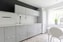 Ljust och stilrent kök utrustat med spis, ugn, spisfläkt, diskmaskin, kyl samt frys. Matplats invid fönster.