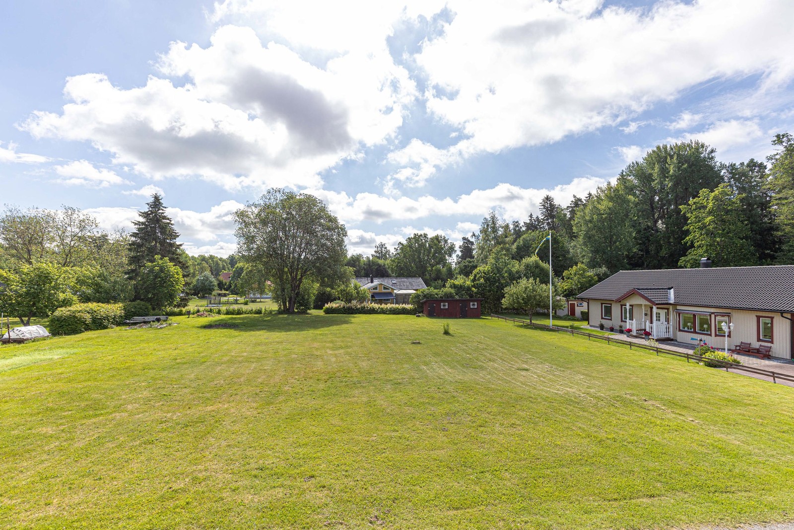 Tomten ligger på vänster sida efter det röda en och halvplanshuset.