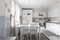 Rejält kök med gott om förvaring bakom vita luckor. Bra arbets- samt avlastningsytor i rostfritt/laminat med ovansittande kakel. Den maskinella utrustningen består av spis, spisfläkt, diskmaskin samt fullstor kyl och frys. Köket rymmer även matplats för ca 6 personer.