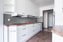 Kök: Plastmatta och tapetserade väggar. Vita skåpluckor och grått kakel ovan arbetsbänk. Utrustat med spishäll, ugn, spisfläkt, integrerad diskmaskin samt kyl och frys.