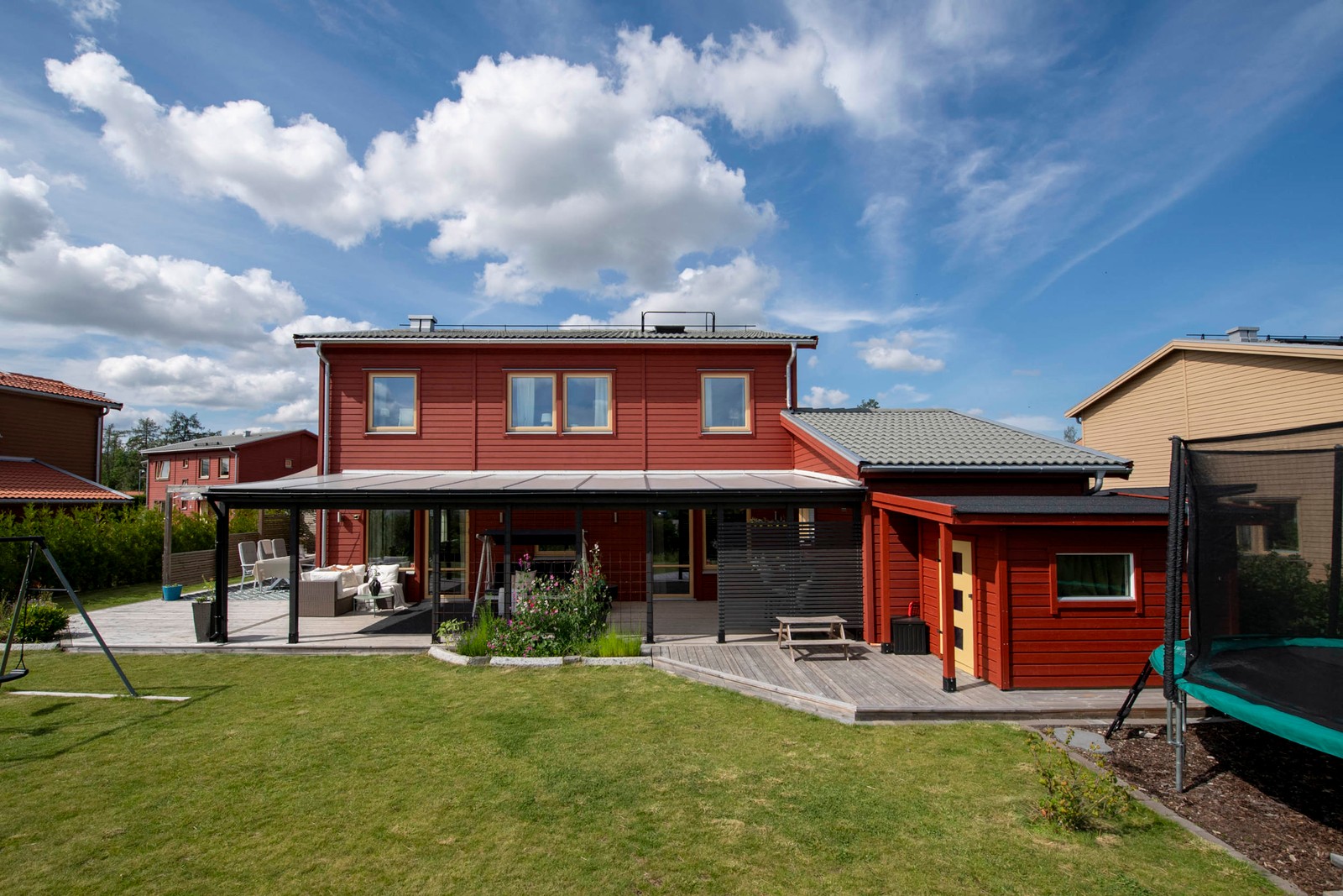 Trivsamt belägen på lugnt område välkomnas ni till denna fristående 2-plansvilla som passar för både den mindre och större familjen. Huset bjuder på generösa sällskapsytor med ett stort och fräscht kök från HTH i öppen och social planlösning med vardagsrummet där det finns gott om plats för såväl bjudningar som skönt soffhäng. Den öppna planlösningen skapar en fin rymd. Från vardagsrummet når ni den stora terrassen med bästa läget som ger möjlighet till gott om sol hela dagen. Här kan man njuta av härliga kvällar med familj och vänner. Ute på tomten möts ni av lättskött grönyta där barnen kan leka fritt. Lägg där till att huset rymmer fyra till fem sovrum, så har ni den perfekta familjebostaden. Carport samt uppfart för 2-4 bilar. Gott om förvaringsutrymme i form av garderober, klädkammare samt isolerat uteförråd om 6 kvm och en fin lekstuga och redskapsbod. Två helkaklade badrum samt separat tvättstuga. Bo på en lugn gata med möjlighet till några av Västerås bästa för-/grundskolor samt med närhet till Fullerö golfbana, bad- och båtplats, fina lekparker och vackert naturskönt område.