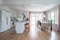 Vardagsrum med fint ljusinsläpp via stora fönster i tre väderstreck. Rummet tillåter med enkelhet vardagsrumsmöbler samt matplats för större sällskap.