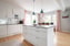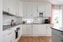 Stilrent HTH-kök i socialt öppen planlösning. Härlig och väl tilltagen köksö. Mycket god förvaring bakom vita kökssnickerier från HTH och bänkskivor i ljusgrå laminat. Kakel samt praktisk bänkbelysning ovan arbets- samt avlastningsytor. Full maskinell utrustning från Siemens i form av häll, fläkt, integrerad diskmaskin, inbyggnadsmikro, inbyggnadsugn samt fullstor kyl och frys. Ytskikt i form av ljust tapetserade väggar och ekparkettgolv i kök och vardagsrum. Utgång till trädäckad altan där större del är under tak.