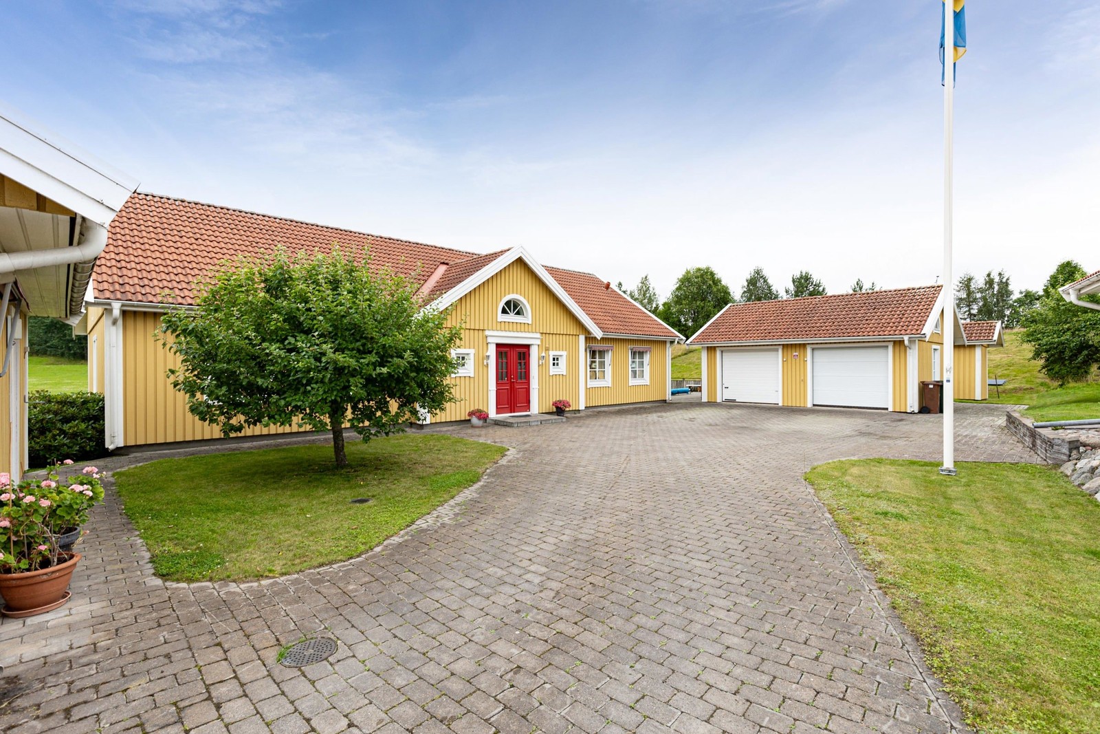 Herrgårdskänsla i mycket välvårdat enplanshus med gästhus och dubbelgarage