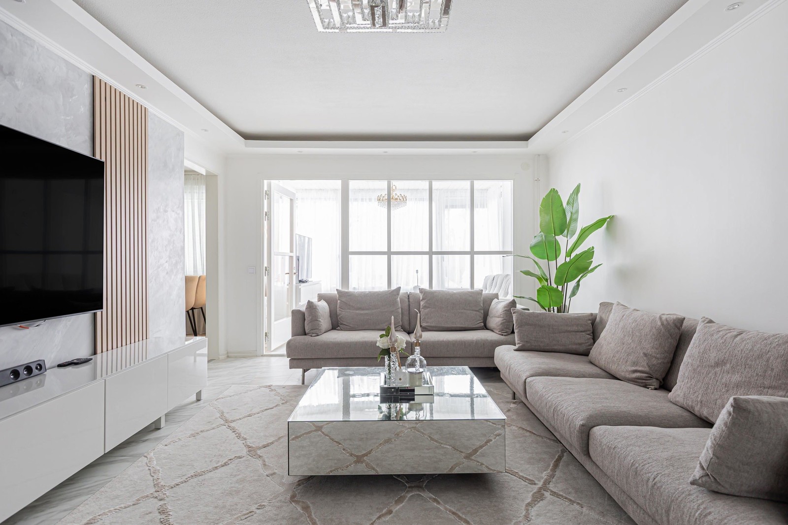 Lägenheten erbjuder smakfull och sober färgsättning samt genomgående ljusa ytskikt som ger en harmonisk och trivsam atmosfär. Det stora vardagsrummet är lättmöblerat och inbjuder till sociala stunder. Det moderna köket har gott om förvaring och arbetsytor samt en rejäl matplats för hela familjen.