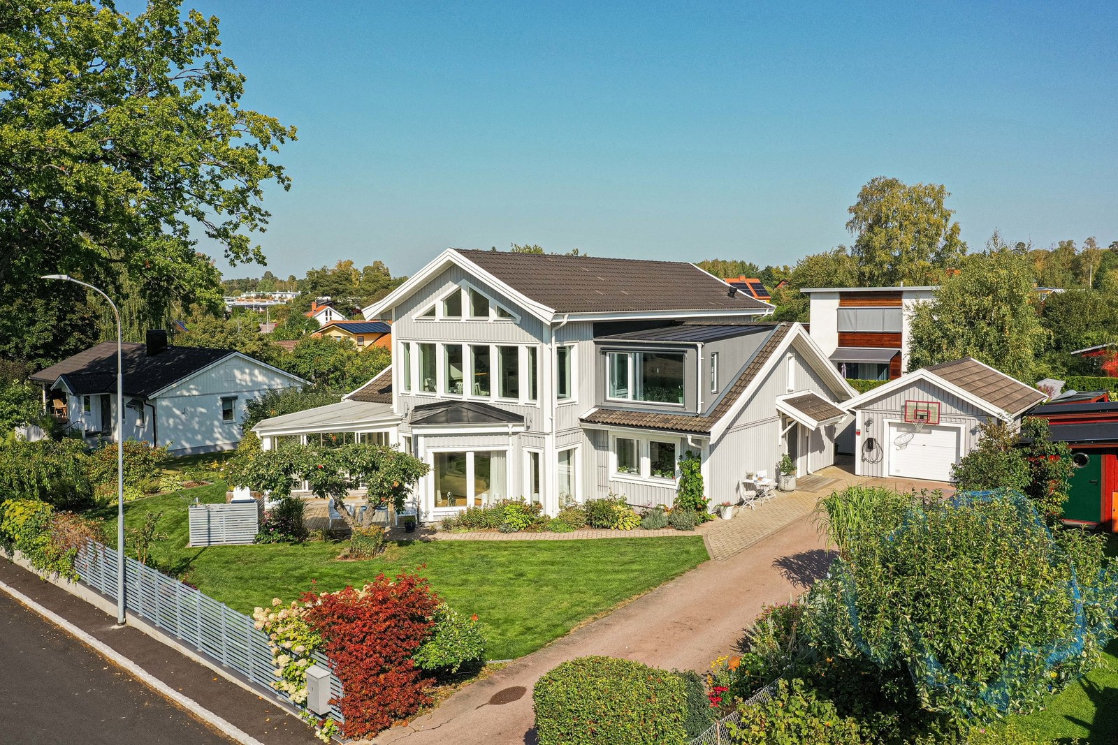 Hjärtligt välkommen till denna magnifika fastighet om 248 utsökta kvm! Representativt boende där entréplan karaktäriseras av fantastiskt vardagsrum med magiskt ljusinsläpp samt högt i tak (öppet till nock), perfekt avvägd öppen planlösning samt estetiskt tilltalande kök. Mycket generösa sociala ytor. Utöver detta utgång till inglasat uterum, rogivande master bedroom samt ytterligare två sovrum. Dubbla badrum samt tvättstuga med utgång till baksida. Övre plan erbjuder spektakulärt allrum med sjöutsikt, ytterligare vardagsrum (även här sjöutsikt), två sovrum med smart planerade loft samt badrum.