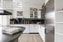 Vidare i lägenheten återfinns det praktiska köket med gott om förvaring bakom ljusa skåpluckor. Goda arbets- samt avlastningsytor med ovansittande kakel. Maskinell utrustning bestående av spishäll, köksfläkt, inbyggd diskmaskin, inbyggnadsugn och mikro samt kyl och frys. Här fås även plats för matbord. Trevligt ljusinsläpp via dubbla fönsterpartier.