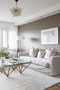Lång hall som avslutas i vardagsrummet som är inrett med lugna färger och stilren fondtapet. I taket hittar du spotlights för härlig belysning. Här kommer du även ut till den rymliga balkongen med eftermiddags- och kvällssol.