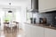 Köket är ett trevligt IKEA-kök i vita toner som bryts av med ett snyggt svart kakel vid köksbänken. Fullt utrustat och även matsalsdel.