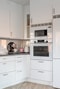 Stilrent och tidlöst kök i öppen planlösning. Matplats intill fönster. God förvaring bakom vita släta luckor. Kakel ovan arbets- samt avlastningsytor. Maskinell utrustning i form av spishäll, spisfläkt, inbyggnadsugn, inbyggnadsmikro, integrerad diskmaskin samt kyl/frys.