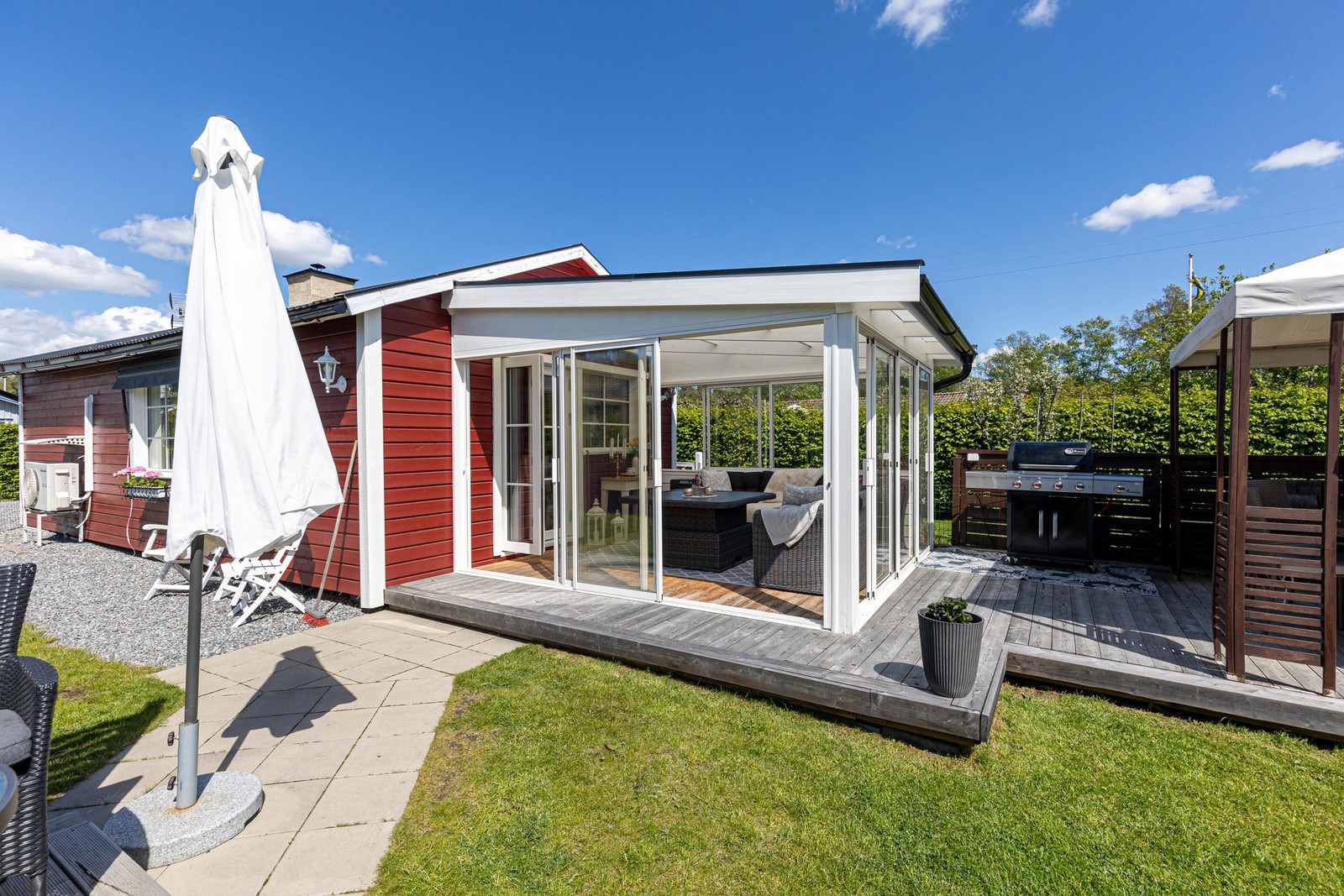 Påkostad kolonilott med stuga och växthus i populära Gränsta