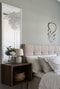 Rogivande sovrum med exemplariska förvaringsmöjligheter via flertal garderober. Harmonisk färgsättning samt ekparkett.