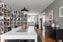 Rogivande sovrum/arbetsrum med målade väggar och ekparkett.